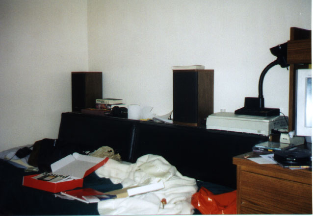 This is what my Roommate's bed looks like. It rarely changes. i don't know what he does with the stuff at night. But he does sleep there somewhere, sometimes.